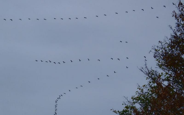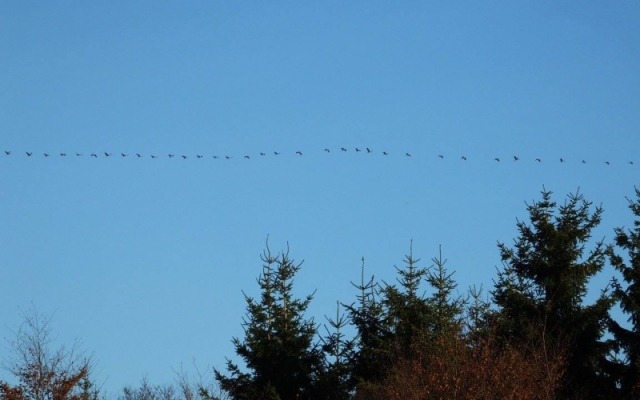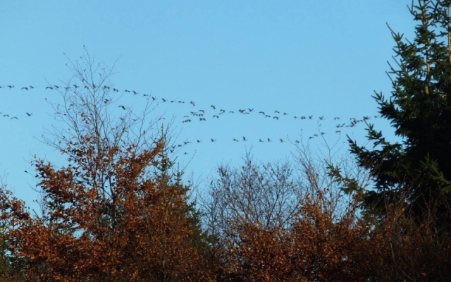 Au mois de mars et en novembre, les grues cendrées (Grus grus) migrent respectivement vers leurs sites de nidification et d’hivernage. Elles empruntent à peu près toujours les mêmes couloirs larges de +/-200 kms . Un couloir important passe par la façade sud-est de la Belgique mais parfois, lors de conditions météorologiques particulières, les oiseaux passent plus franchement sur la Wallonie comme au printemps 2013 ou à l’automne 2014: un spectacle magnifique!